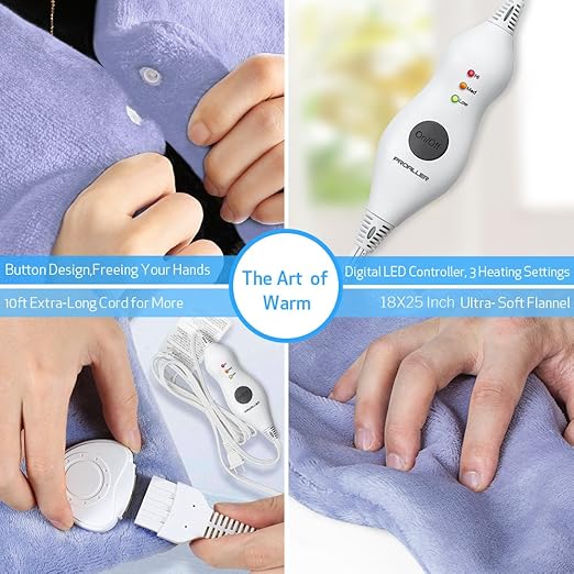Soft-touch LED (light emitting diode) controler allows for you to adjust between three heat settings while the 10 foot extra long cord allows you to wear it comfortably almost anywhere.