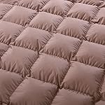 The C&W (Comfort Warm) company makes bedding for the Hilton, Marriott, Westin, and other hotels globally since 1996. The soft luxurious comforter is 600 fill power (FP), 65-ounces of authentic white goose down from France, with a thread count (TC) of 800. The covering is mocha colored to harmonize or accent any bedroom décor and is 80% polyester and 20% cotton. The filling is 50% down and 50% small down feathers making the filling breathable. It repels dust mites, is hypoallergenic, and is antibacterial.