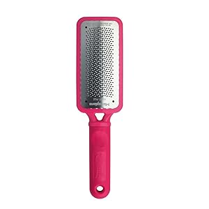 The Microplane® huge rasp/file is just what you need to get rid of thick tough calluses on your feet. Yes, it looks like a cheese cutter or zester, but it’s not. The model number 70403-4 is a top seller and available in brown, black, and pink on Amazon.com®.