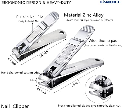 - Nail File—will polish and smooth ragged edges after clipping nails for smooth roundness.