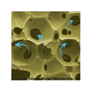 The open cell foam is porous, meaning more open cells than visco elastic foam for more breathability. Air travels throughout the foams to remove body heat for a cool sleep.