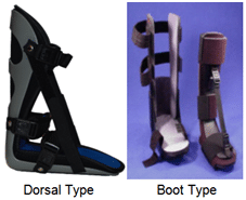 The Boot night splint looks like a boot with the spine on the back of the leg and calf to fit under the foot. It is usually larger than the Dorsal type.
